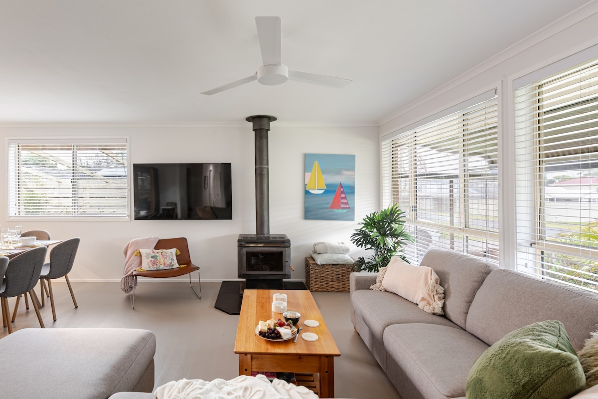 ¡El centro de escapadas épicas de tu familia! Literalmente, un hogar lejos de casa. Trae a las mascotas y a los niños, todo lo que la familia necesita está en Silvermere Coastal Retreat. Ubicada en Culburra Beach, South Coast NSW, disfruta de las vistas de la playa/océano y del lago mientras cocinas o te relajas en la sala de estar. La casa está a muy poca distancia de la playa apta para perros, restaurantes de moda y también cuenta con una envidiable zona de fogatas. La casa se reserva rápidamente durante los periodos de máxima actividad, así que entra rápido.