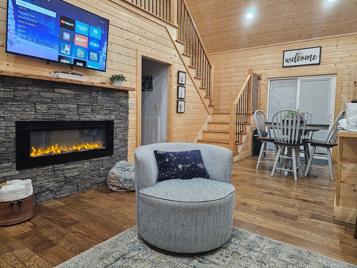 ¡Bienvenido a tu hogar lejos de casa! Esta acogedora cabaña en el bosque, a solo 5 minutos del parque estatal/puerto deportivo, cuenta con jacuzzi, chimenea, brasero, parrilla Webber y cocina totalmente equipada. ¡Queremos que te relajes y disfrutes del golf, la pesca, la navegación, el senderismo, la exploración de cuevas y cascadas y mucho más! Se cobrará un depósito de seguridad por daños de 300 dólares, totalmente reembolsable, que se envía manualmente. Este depósito debe pagarse 24 horas antes de la llegada y se devolverá 24 horas después de la salida si no hay ningún desperfecto.
