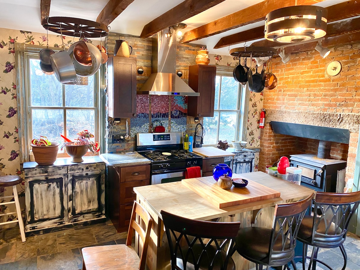 Experimenta una tranquilidad inigualable en esta granja aislada de 14 acres. La granja Genteel, una casa de campo bien equipada, se encuentra encima de un tramo privado del arroyo Middle Spring. Te recibirán unas impresionantes vistas a las tierras de cultivo, una abundante vida silvestre y un coro melodioso de una gran variedad de aves. Nuestras vacas de las Tierras Altas de Escocia pastan en el hermoso prado frente a la casa. Tome una taza de café, disfrute de la terraza con vistas al agua, pesque en el arroyo, camine por los terrenos y sumérjase en este sereno lugar.