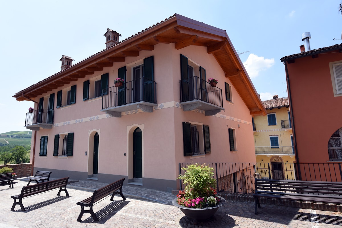 Un apartamento en una casa del siglo XVII recién reformada con vistas al castillo de Serralunga d'Alba y a los viñedos circundantes, que se puede disfrutar desde cualquier habitación o desde el pequeño balcón que pertenece al apartamento. Adecuado para una estancia romántica (no hay otros huéspedes en el barrio), un viaje de cata de vinos (los famosos viñedos y bodegas de Barolo están por todas partes) o una estancia familiar, haciendo uso de la cocina totalmente equipada.