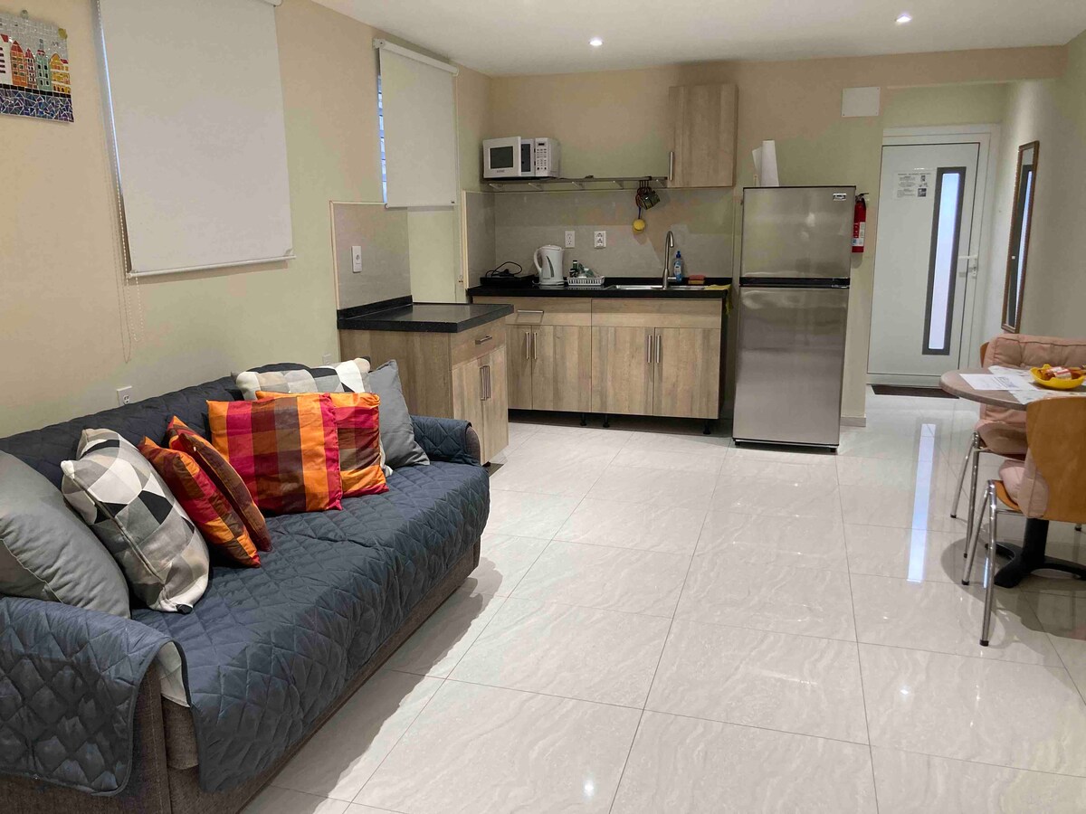Estudio privado totalmente climatizado que cuenta con todas las comodidades y servicios para que tu estancia sea placentera. Se encuentra a 5 minutos a pie de una playa pública para nadar, bucear o practicar esnórquel, y a 10 minutos a pie del popular acuario marino, Dolphin Academy, Wet and Wild, Cabana, Mambo Beach Club, restaurantes/bares/tiendas y una zona de recreo pública. Además, a poca distancia a pie de un supermercado, casino, cajeros automáticos, farmacia, transporte público en autobús y a 10 minutos en coche del centro de Willemstad.