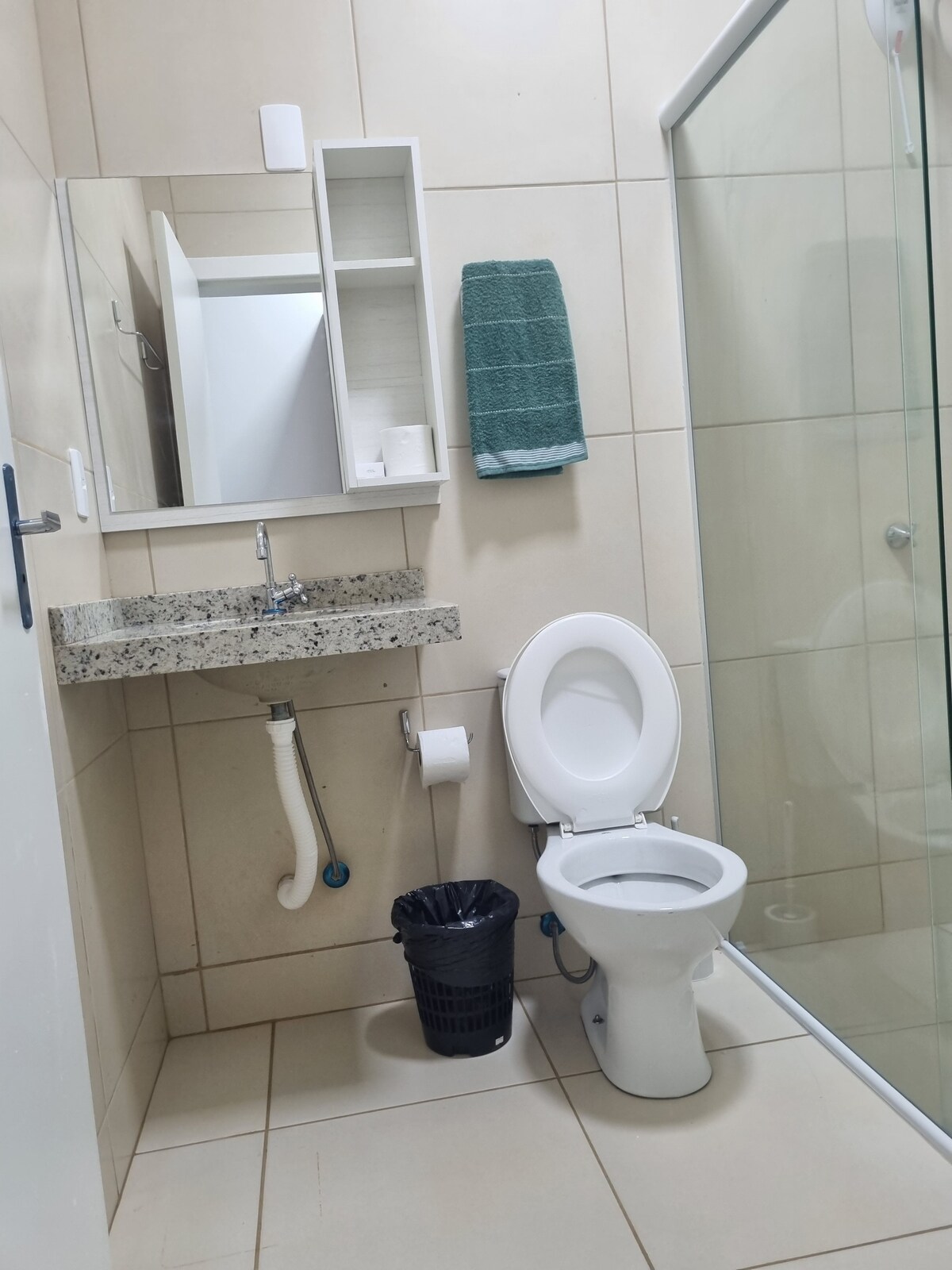 O loft aconchegante oferece um quarto completo com ar condicionado, guarda-roupa, TV de 32 polegadas, Wi-Fi, e uma mesa com duas cadeiras. A cozinha está equipada pia de mármore e armário de cozinha,chaleira elétrica, térmica e coador de café, além de uma geladeira. O banheiro é completo, proporcionando conforto e praticidade.