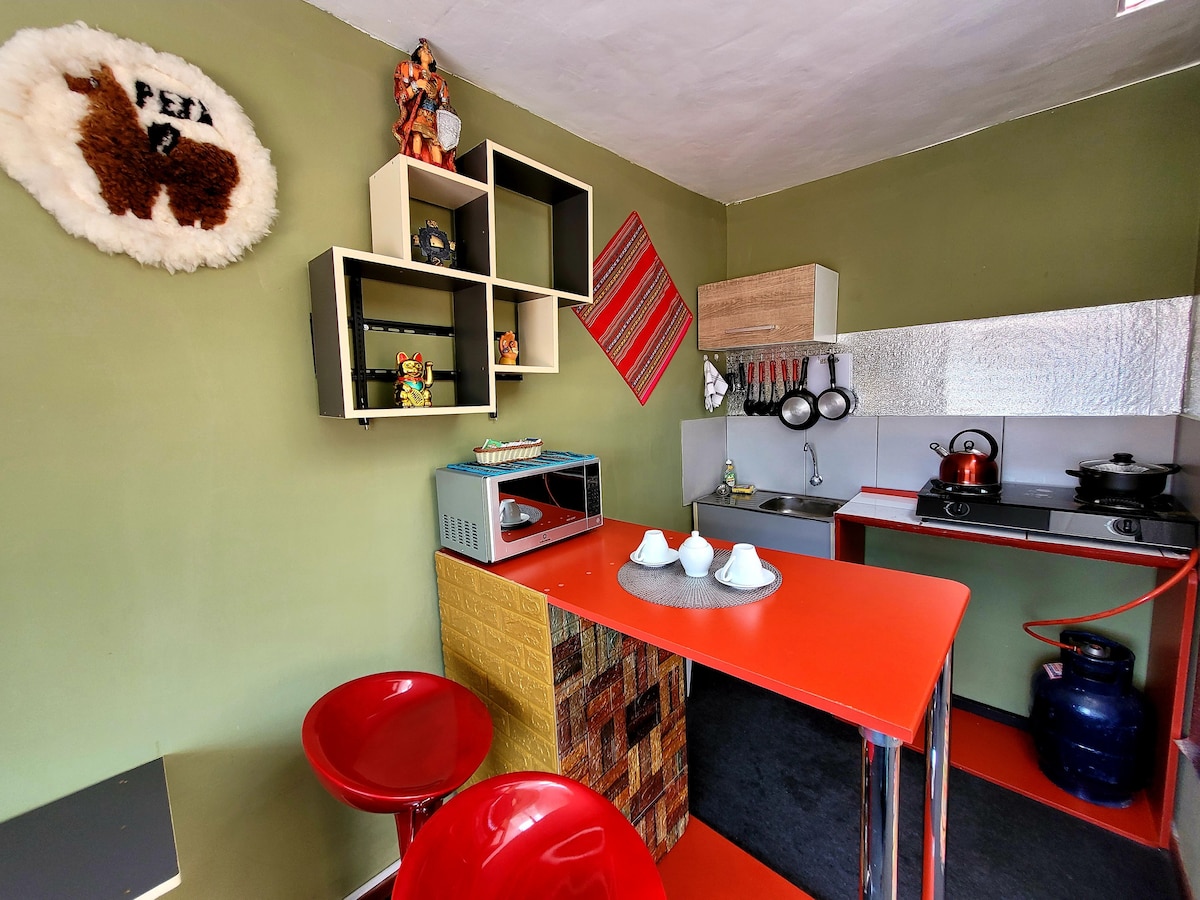 El apartamento se ubica en una zona céntrica de Cusco, donde podrás encontrar muy cerca supermercados, restaurantes, farmacias, entidades bancarias y financieras, casas de cambio, clínicas de salud y otros, decoración moderna sencilla, funcional, acogedor y bien iluminado. Sala con biblioteca, Wifi, Netflix, Cable mágico, sofás confortables, moderna cocina y comedor totalmente equipado, duchas con abundante agua caliente las 24 horas, terraza con sombrilla y vista panorámica de la ciudad.