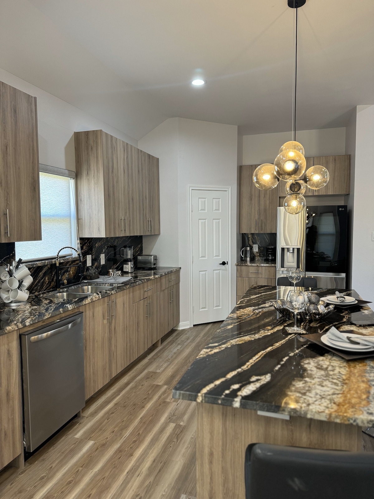 Relájate y desconecta en esta casa de nueva construcción, moderna y elegante. Situado en el corazón del centro de Conroe. Muy cerca de excelentes restaurantes, entretenimiento y el centro de convenciones de Conroe. A unos 15 minutos del lago Conroe, ¡estas vacaciones serán inolvidables! Disfruta de una película en la azotea bajo las estrellas o crea recuerdos alrededor de la chimenea al aire libre en el patio trasero. Ponte cómodo frente al televisor de 75 pulgadas. Con televisores en todas las habitaciones, disfruta de una noche de descanso tranquila en cómodas camas.