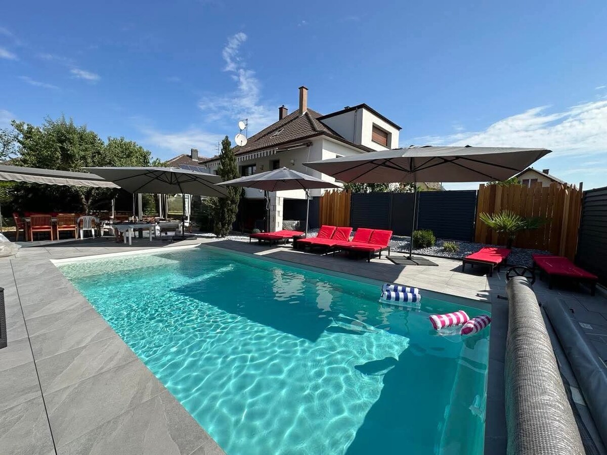 🔥 Gran apartamento de lujo de 155 m² – Ruta del Vino y Vosgos Amplio apartamento de lujo de 155 m² con 3 dormitorios, situado en el centro de Mutzig, tranquilo cerca de los viñedos, a solo 20 minutos del centro de Estrasburgo🚗🍇. Entre Estrasburgo y Colmar, en la Ruta del Vino y al pie de los Vosgos🌄. Ideal para familias, parejas o amigos para descubrir Alsacia🏰🍷. Piscina climatizada todo el año a 30° 🏊♀️🔥, confort premium, estancia relajante y ubicación perfecta ✨🏡