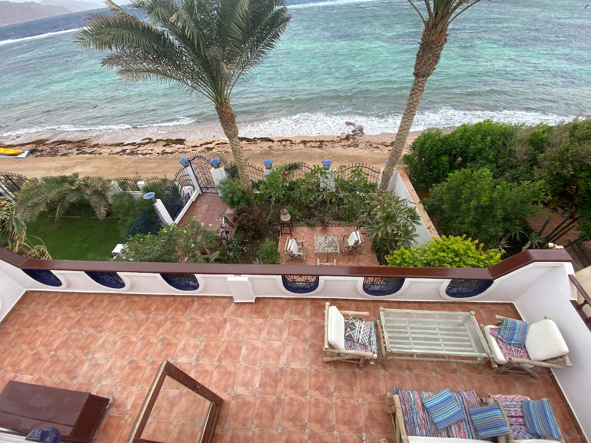 Villa with private pool and boat directly on Dahab beach; 3 bedrooms overlooking the sea, panoramic roof terrace and private beach. Faris is located in a trendy but quiet area of Dahab-Assalah between the Neom Hotel and the excellent Sarda Café/Restaurant (home delivery). We also offer private snorkelling trips with our boat or excursions to the deep desert (1 trip is free for bookings of 7 days or more). Cancellation: contact us for a full refund or date change up to 8 weeks before check-in.
