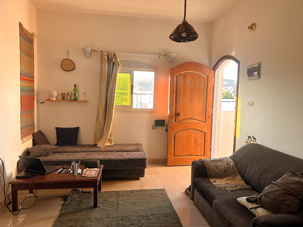 Relax in this tranquil home Strategically located in the heart of Dahab In the Al Manara area Amidst restaurants and cafes Just 2-3 minutes from the beach. The home features air conditioning, a bedroom with a king-size bed and wardrobe, A fully equipped kitchen with all appliances Minutes from the sea, and steps away from shops, beaches, and diving centers. *Electricity is not included in the accommodation price for your personal use.
