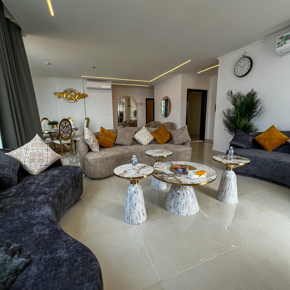 Disfruta de una estancia lujosa y cómoda en un apartamento moderno en Jeddah que combina privacidad y lujo. 🛏️ Un dormitorio espacioso con una cama cómoda y decoraciones elegantes, 🛁 un baño moderno con una bañera separada y una ducha de vidrio, 🛋️ una amplia sala de estar para relajarse o recibir huéspedes. 🚪 Llegada autónoma flexible, una ubicación privilegiada cerca del parque🌳, el estadio Al Jawhara⚽, el centro comercial The Village🛍️ y la playa🌊, para una experiencia de estancia perfecta que combina comodidad y disfrute de las áreas cercanas. Nota 🔴importante: el apartamento está en el segundo piso y no hay ascensor🔴