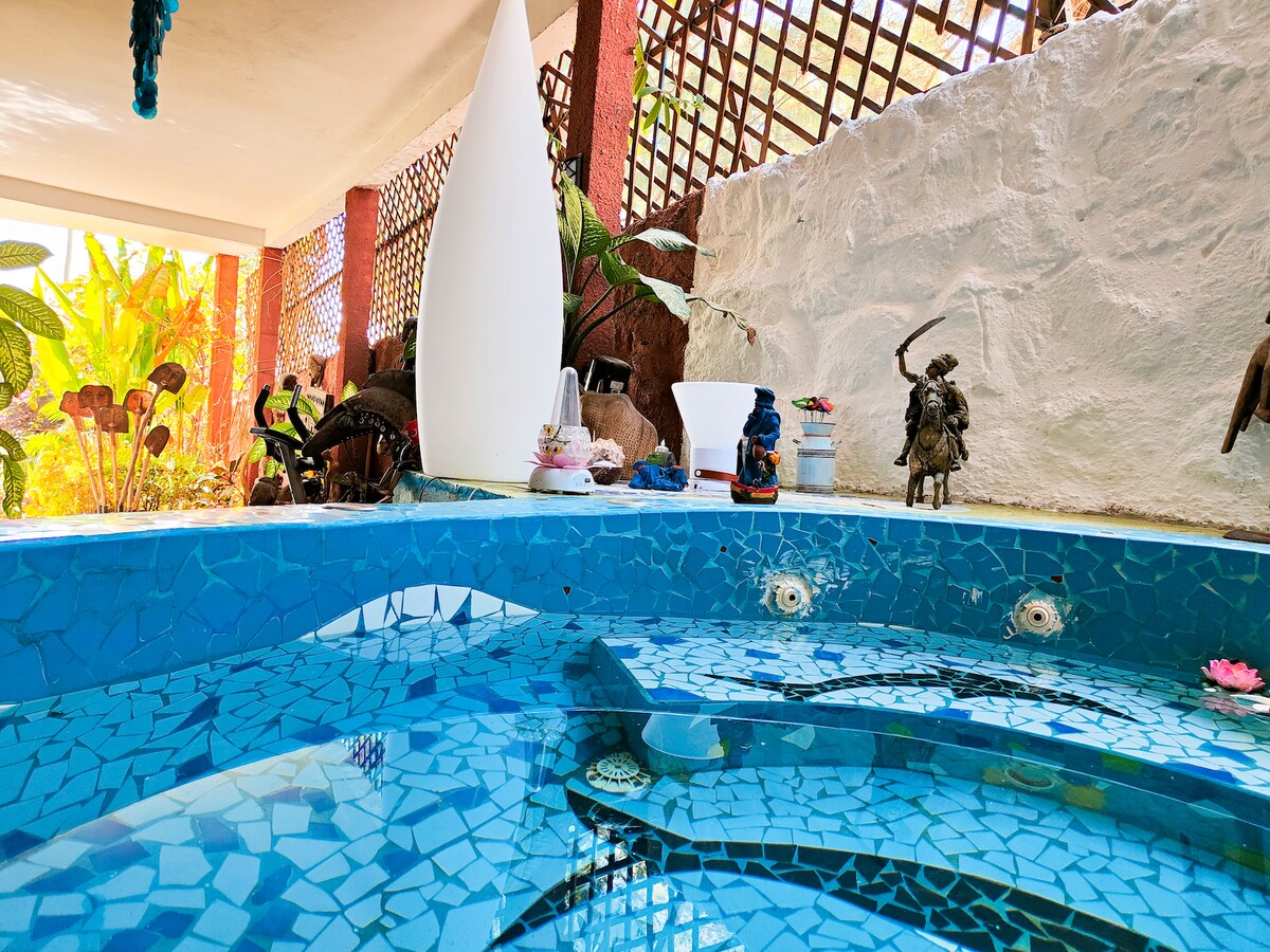 Un estudio con encanto con influencias africanas y orientales, ubicado en una isla tranquila, a solo 8 minutos de Dakar y a 50 metros de la playa. Este estudio con aire acondicionado, con una decoración cuidada y cálida, ofrece: • zona de noche confortable • baño • jardín tropical privado, un verdadero remanso de paz • cocina exterior personal, ideal para disfrutar plenamente del entorno natural Jacuzzi privado climatizado Un barco privado con patrón, disponible día y noche Personal doméstico