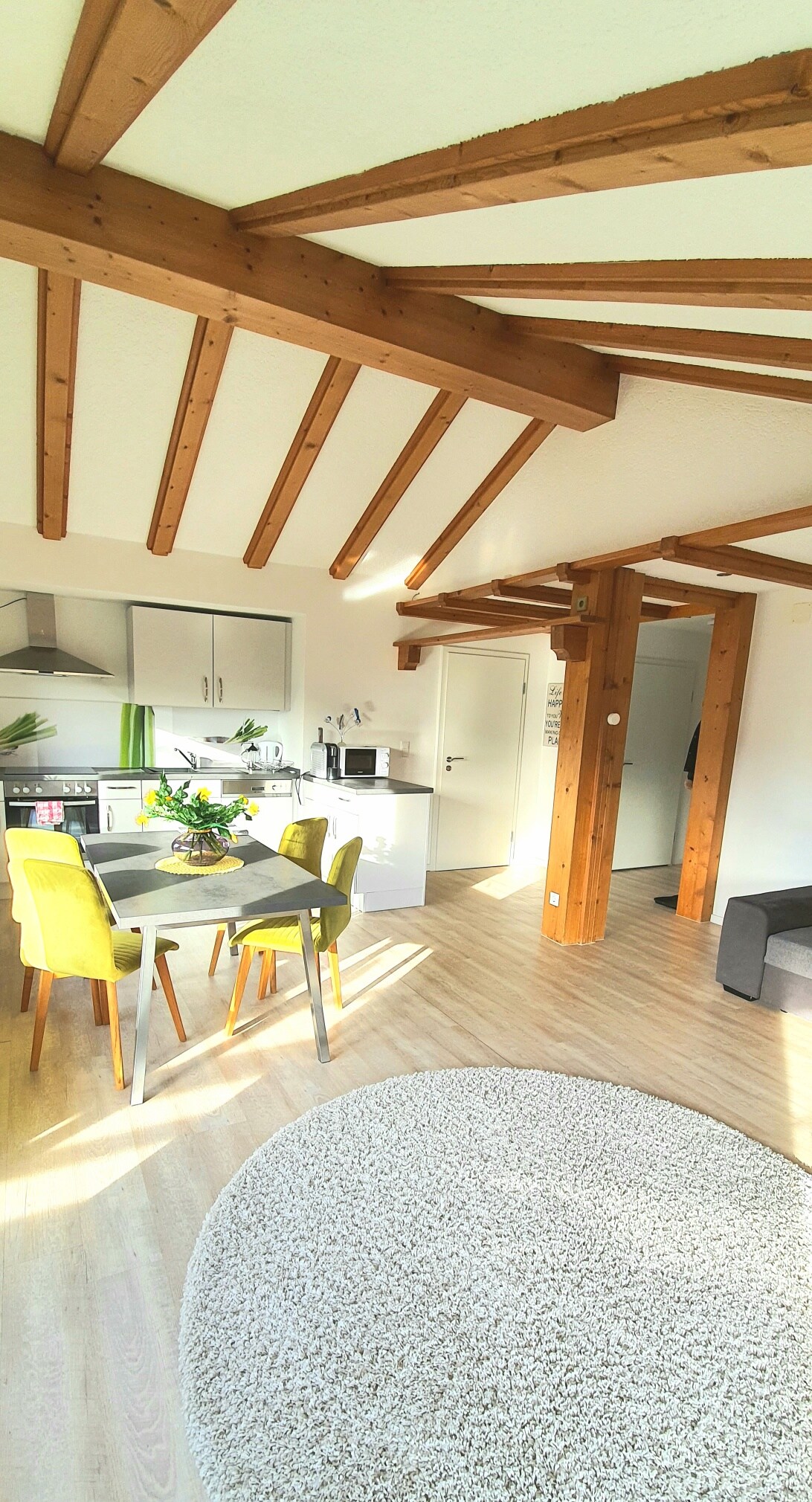 Hermoso, luminoso y nuevo apartamento tipo galería en el centro del pueblo de Langen. Café / panadería para el desayuno en el edificio contiguo. Pequeño supermercado en la planta baja. El pub del pueblo al otro lado de la calle. Bañado por el sol con vistas a la montaña. Pisos de madera, amueblados con muebles elegantes. Plaza de estacionamiento subterráneo privado disponible. Estación de carga de movilidad eléctrica en el estacionamiento subterráneo para enchufe tipo 2 de 11 kW CA. Sótano para bicicletas con cerradura. Conexión a Internet de fibra óptica con 250 Mbit