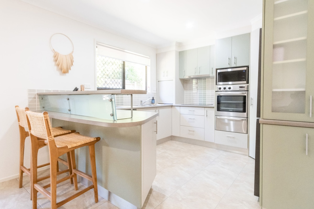 Este apartamento de la planta baja en el norte de Brisbane tiene fácil acceso desde la tranquila calle suburbana del centro de la ciudad, rodeado de árboles frondosos y con aire acondicionado. Hay aparcamiento fuera de la carretera. Está a pocos pasos de una encantadora cafetería y de la parada de autobús, cerca del centro comercial y de la estación de tren, y a 20 minutos en coche del aeropuerto. Los huéspedes pueden tener total privacidad, con acceso dirigido según sea necesario. De lo contrario, mi marido y yo solemos estar en casa y podemos recibir y dar la bienvenida a los huéspedes si así lo desean.