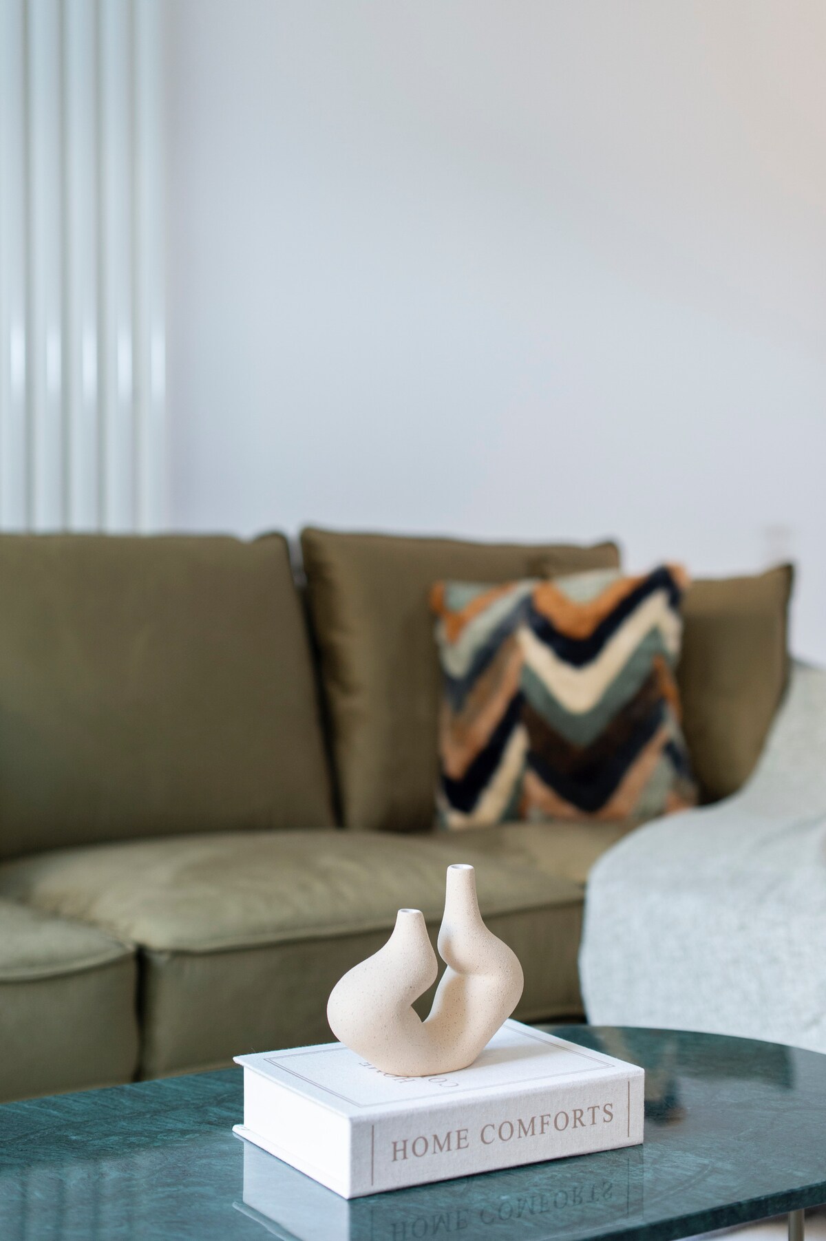 Welcome to our modern 2-bedroom flat, where comfort meets convenience! The master bedroom boasts a luxurious super king-size bed, convertible to two singles, and a built-in wardrobe. The second bedroom offers a king-size bed, along with flat-screen TV. Relax in the spacious living area, featuring a plush leather sofa and a large 55-inch smart TV. The fully equipped open-plan kitchen includes a microwave, kettle, toaster, and washer dryer for your convenience.