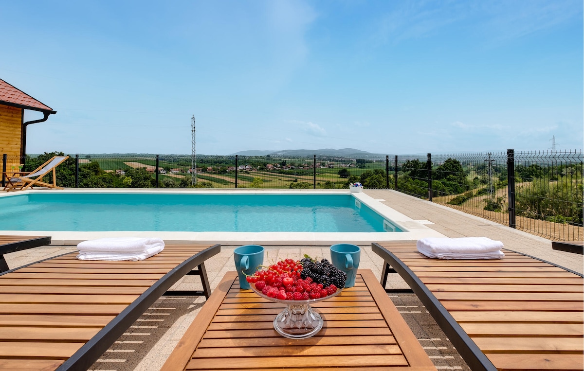 Casa de lujo de 5* recientemente renovada. Queríamos crear un lugar para que las personas puedan desconectarse del estrés cotidiano, respirar al máximo y sentir la alegría de la vida de nuevo en sus momentos más simples pero más importantes. Ubicado en las suaves laderas de Bilogora, rodeado de vegetación y tranquilidad. Piscina de agua salada y jacuzzi con vista. Relajación en una sauna finlandesa.