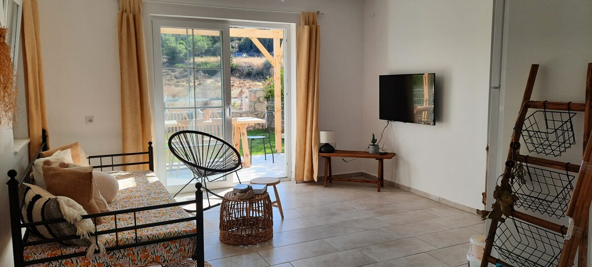 ¡Atención! Nuestra piscina climatizada está fuera de servicio hasta las vacaciones del Ramadán. Entra en tu piscina privada y relájate con el sonido de los pájaros en nuestra casa. Nuestras casas ubicadas en el barrio de Kızlan están justo en medio del Mediterráneo y el mar Egeo. A 4 km del mar Mediterráneo, a 5 km del mar Egeo, a 5 km del centro de Datça, a 3 km de Eski Datçaya. Estamos a solo 500 metros de la tienda de comestibles, tienda de comestibles, panadería. Hay 1 cama doble, 1 sofá cama y 1 cama individual en nuestro entrepiso.