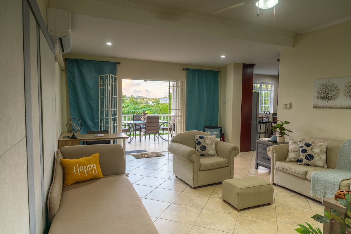 Los apartamentos de Mountain View están situados en una colina en una zona pintoresca muy calmada. Una cómoda sala de estar con spa en el lugar para proporcionar una experiencia holística caribeña. La brisa atlántica puede relajarse y ofrecerle una sensación terapéutica de relajación a través de puertas corredizas de vidrio que se abren a las colinas. Mantente atento al sol que sale por las montañas todas las mañanas. Debido a que el propietario vive en la propiedad, todas las necesidades se satisfarán rápidamente.