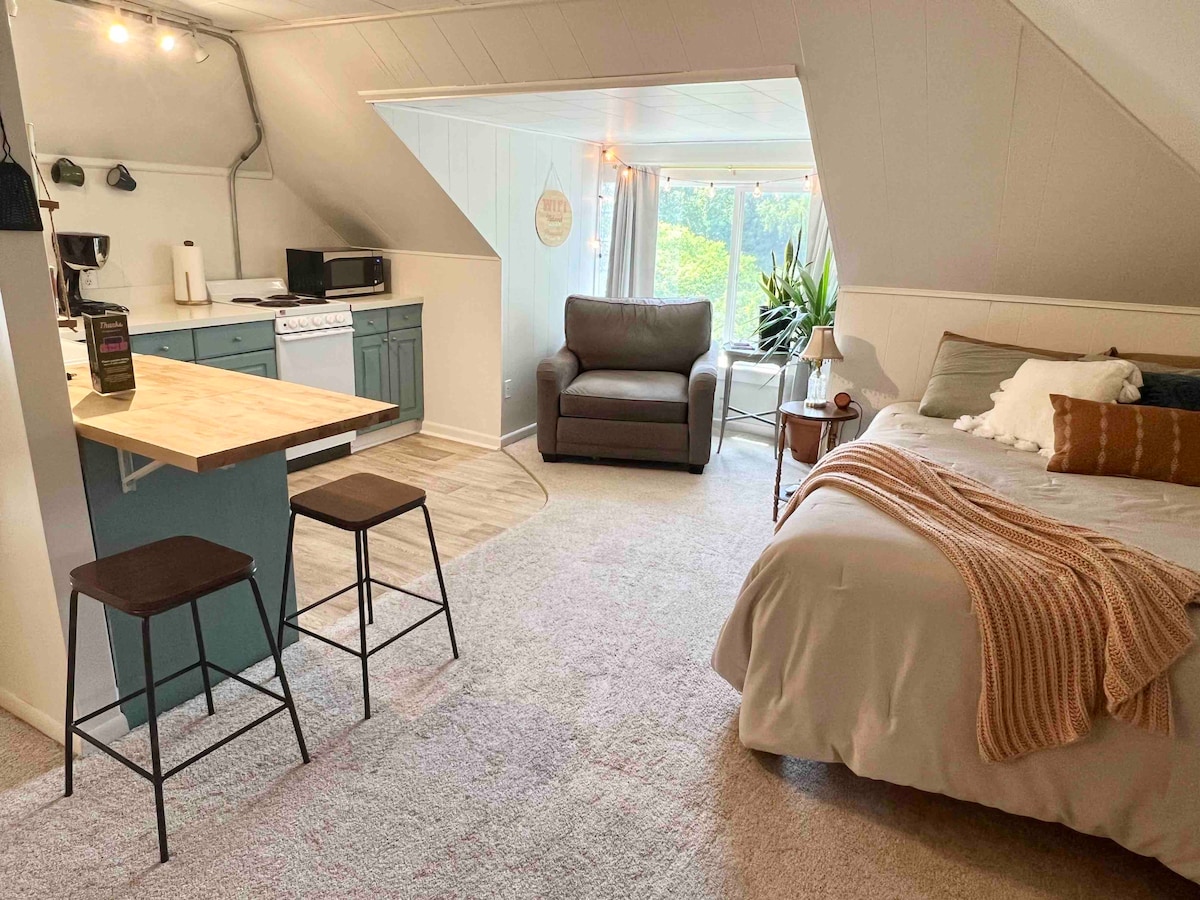 No olvidarás el entorno tranquilo de este destino rural. Tal vez sea pequeño a 375 pies cuadrados, pero tiene todas las características de la mayoría de los hoteles con una cama tamaño queen y una cama doble en el loft. Ubicado cerca del centro de Springfield, IL y muchas atracciones de Abraham Lincoln. Los ciervos a menudo caminan por la propiedad que está en una tranquila calle residencial sin salida. La cocina tiene casi todo lo necesario para cocinar. Muchas toallas, jabón, champú y almohadas adicionales. También puedes ver Netflix, Hulu y Disney.