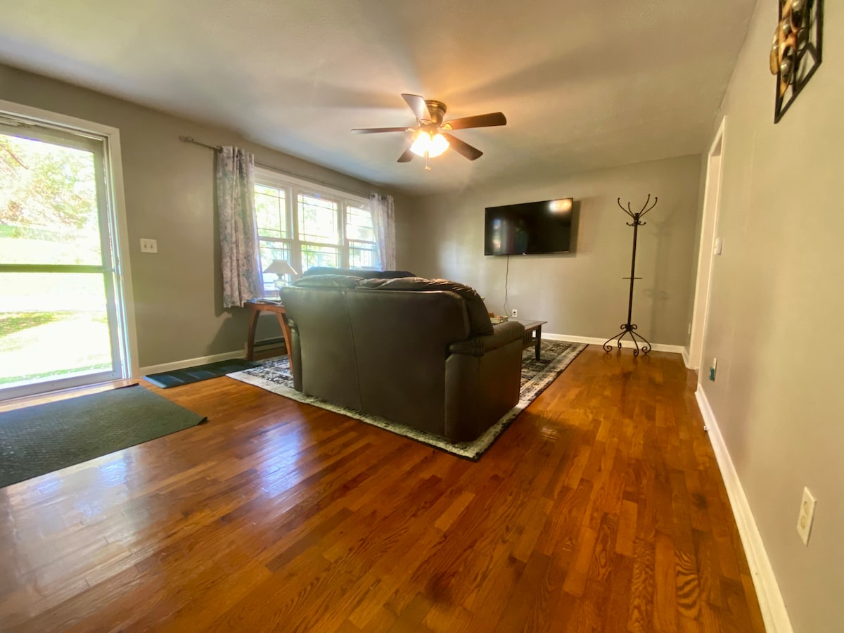¡Disfruta de tu estancia en The Petersburg Place, una acogedora casa de 2 dormitorios y 1 baño ubicada en una ladera del barrio cerca del centro de Petersburg, Illinois! La casa tiene solo tres escalones para entrar en la casa de un solo nivel, entrada sin llave, mucho espacio para aparcar varios vehículos o un barco, un patio trasero vallado con terraza, cocina completa con elementos básicos de cocina, un televisor de 55 pulgadas (Amazon Firestick) y wifi.