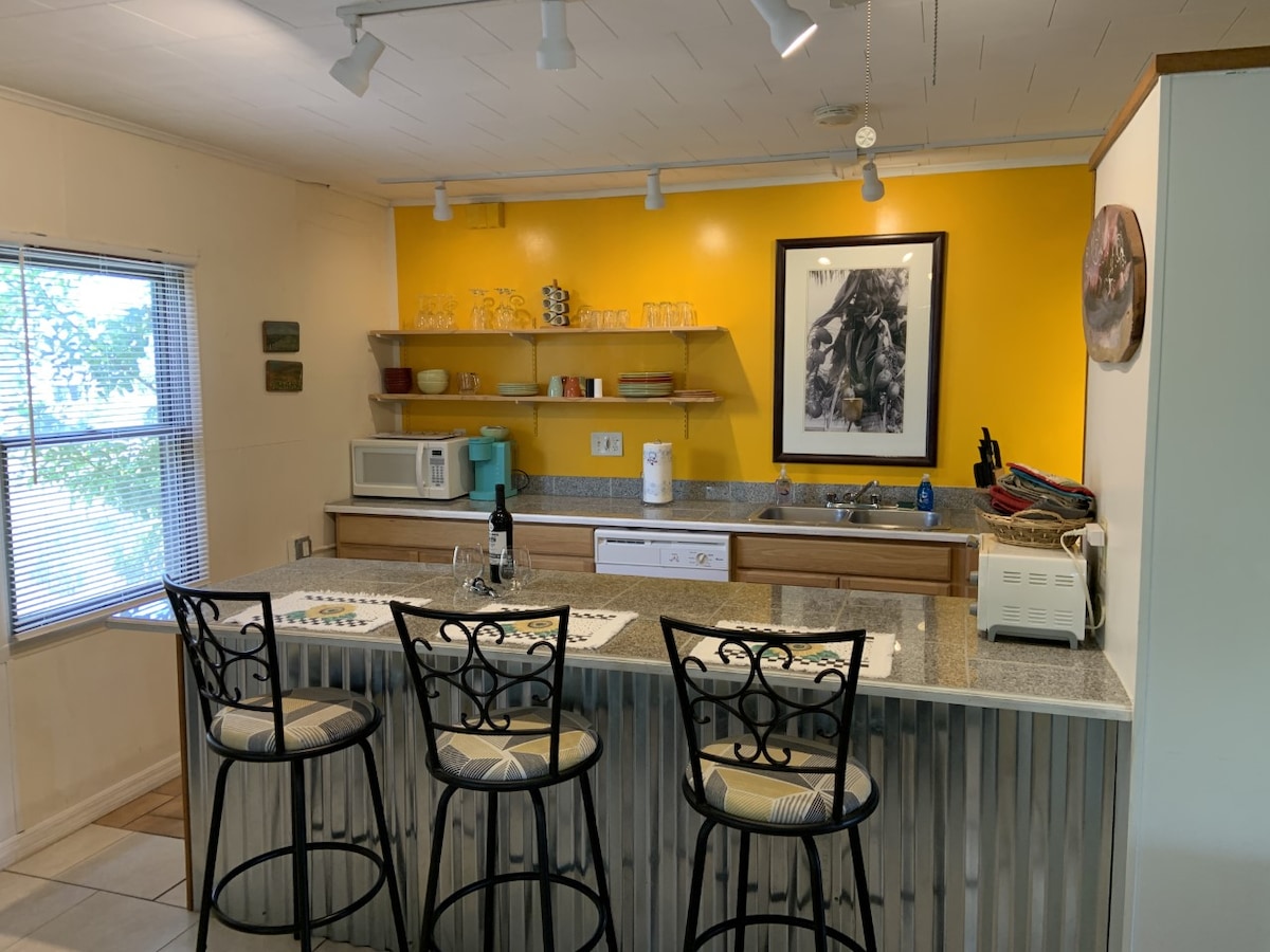 Nuestra casa de 2 dormitorios y 1 baño es una pequeña casa de playa junto al mar. Nuestro alojamiento se encuentra en una pequeña comunidad intercostal en el río Indian. Hay muchos parques justo al final de la carretera. Estamos a 5 millas de la histórica playa de New Smyrna (distrito del canal) y a menos de 7 millas de la entrada de la playa. Para que ir a la playa sea más fácil, hay sombrilla, sillas, nevera y juguetes de arena para tu disfrute.