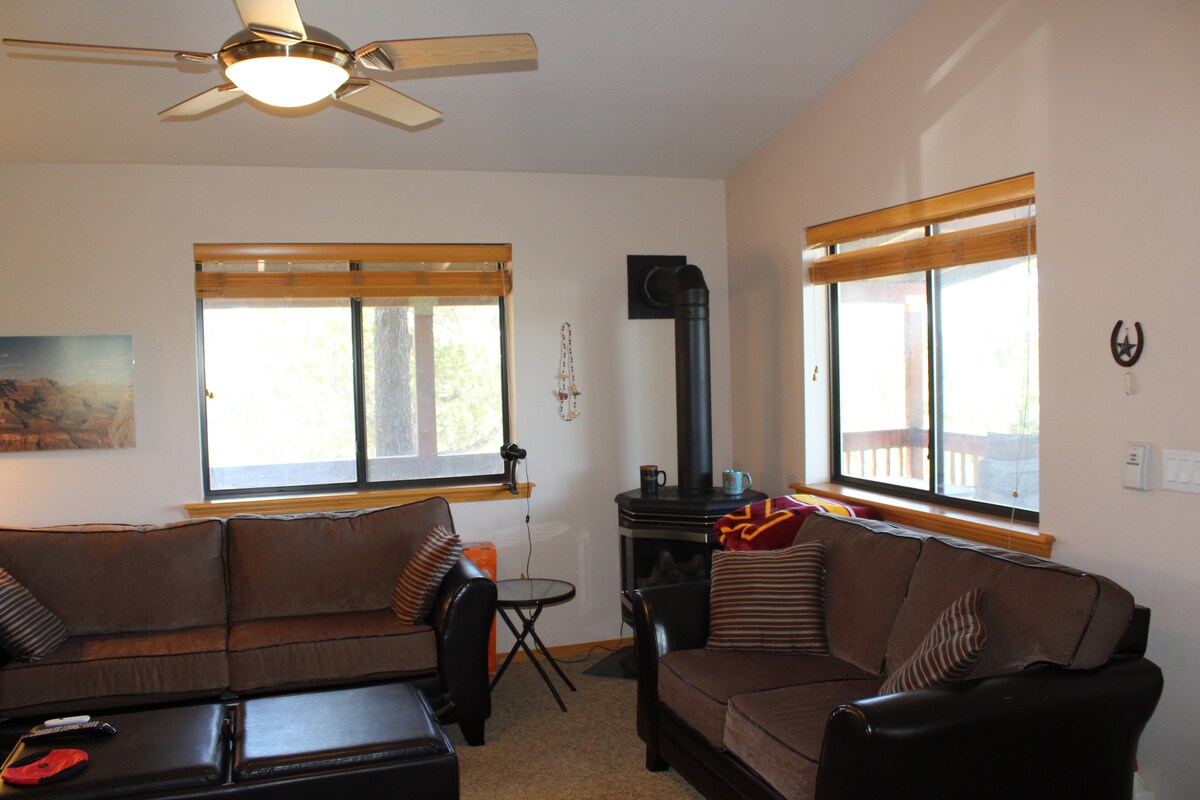 ¡Te damos la bienvenida al SORENSEN RETREAT ubicado en la hermosa y pintoresca ciudad de Heber-Overgaard, AZ! Escapa del calor del valle y planea una estancia en nuestra cabaña de 2 dormitorios y 1 baño remodelada de forma única, ubicada en 2,5 acres de hermosos pinos. Disfruta de los muchos espacios al aire libre, que incluyen una gran chimenea, barbacoa y jacuzzi. Experimenta rutas de senderismo, pesca en lagos locales, todoterreno a través del Bosque Nacional o simplemente relájate y desconecta del bullicio de la vida.