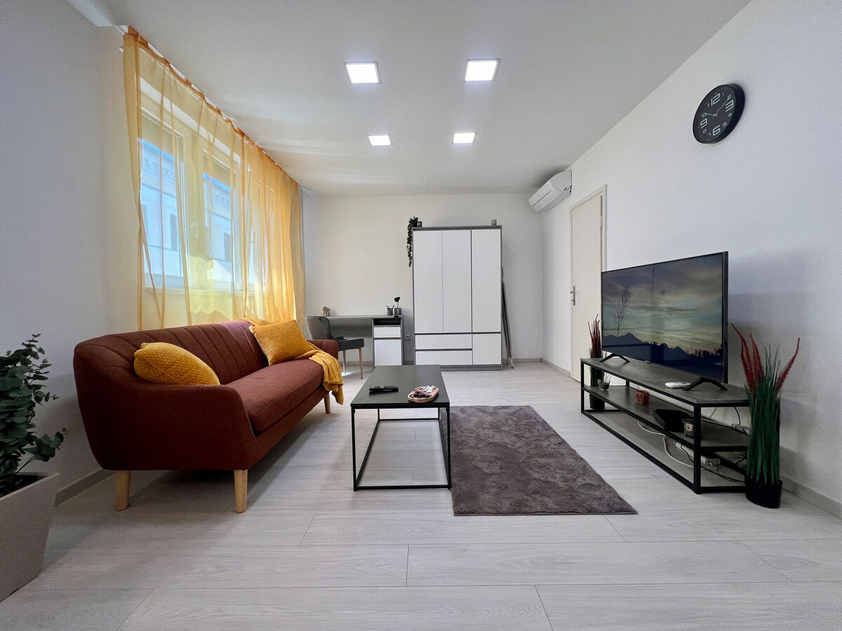 The apartment is located in the heart of the city centre, in the quieter part of Piac Street known as Gambrinus Alley. Downtown practically starts right outside the door. Everything worth seeing is within arm’s reach or reachable by the tram passing in front of the building. The apartment is on the 3rd floor of a charming 19th-century building with an elevator. Entry is keyless, using the access codes provided the day before your arrival.
