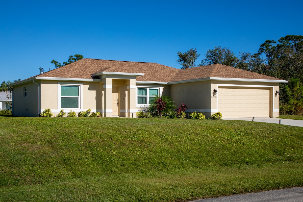 ¡A menos de 30 minutos del estadio de béisbol para el entrenamiento de primavera de los #Rays y los #Braves! ¡Nuestra casa de vacaciones es un oasis de paz, perfecta para descansar y relajarse en uno de los barrios más buscados de Port Charlotte! Disfruta de una estancia relajante en esta moderna y elegante casa de vacaciones que ofrece la siguiente lista de servicios: wifi, transmisión de TV, piscina climatizada, putting green, lanai protegido, accesorios de playa, cocina equipada, espacio para asar a la parrilla al aire libre, lujosas camas tamaño king y patio trasero privado.