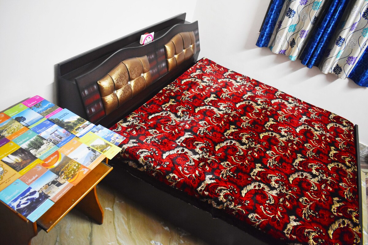 Best Homestay for small family or business stay in Dehradun! Our first-floor suite offers a blend of comfort and character with a king bed, AC, smart TV, Wi-Fi and work desk. Enjoy Mussoorie hill views from the terrace, light cooking in the kitchenette or quiet time in the garden. Hosted by a retired Colonel and former Principal, the home ensures a safe, cultured and family-friendly stay. Close to FRI, ONGC, IHM and Doon School, it’s ideal for families, professionals and solo travelers.