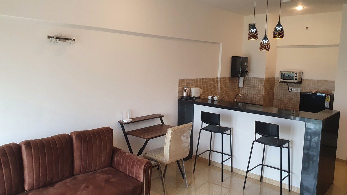Bienvenido a un estudio tranquilo y cómodo de 1BHK ideal para parejas, familias, viajeros solos, amigos y trabajadores remotos. Ya sea que estés aquí para un fin de semana tranquilo, una estancia de trabajo desde casa o un descanso tranquilo más largo, este alojamiento ofrece el equilibrio adecuado de comodidad, vegetación y conveniencia. El balcón privado tiene vistas a los exuberantes alrededores verdes cerca del campo de golf. Con WiFi rápido, aplicaciones OTT y un entorno cerrado y tranquilo, es fácil reducir la velocidad y sentirse como en casa.