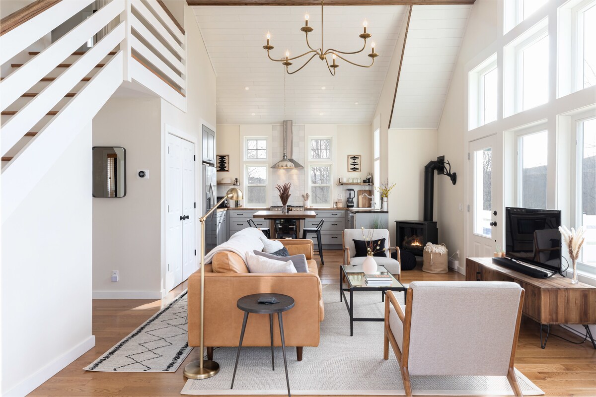 Haz clic en «Mostrar más» para leer la descripción antes de reservar. No se permiten mascotas. Ubicada en lo alto de una carretera privada, The Ridge es una granja moderna de 3 dormitorios y 2 baños recién construida con vistas panorámicas a las montañas. Relájate y cena al aire libre en la terraza envolvente y descubre todas las comodidades de un hogar dentro del espacio habitable de concepto abierto. Ubicado en 5 acres en la ladera de la montaña, a 3 minutos de la ciudad de Roxbury y a 10 minutos de lugares para bodas. Aventuras al aire libre te esperan: actividades de 4 temporadas en las montañas de esquí, senderismo, golf, mercados de agricultores y excursiones culinarias