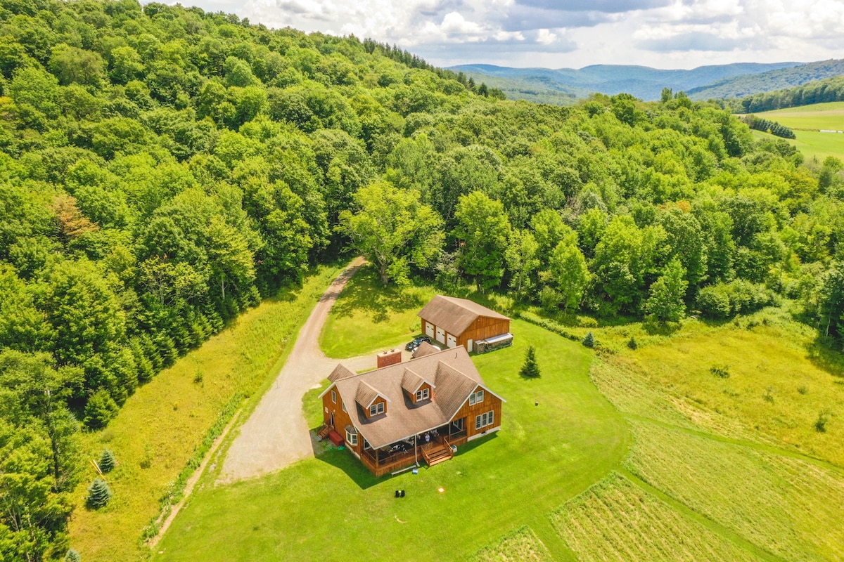 ➡ ¡Guárdanos en tu LISTA DE DESEOS para futuras estadías! Lugar para hacer 🔥 fogata bajo los árboles 🍳 Cocina totalmente abastecida con isla 🎿 A 15 minutos de Belleayre; a 20 minutos de Plattekill Mtn. 🛍️ 5 minutos a Margaretville, 10 minutos a Andes Televisión inteligente de📺 55 pulgadas; WiFi rápido, tocadiscos ✨ Cena al aire libre bajo las luces de cuerda Se admiten🐶 perros: hasta dos perros sin reembolso Tarifa de $ 100. Lo siento, no se permiten gatos.