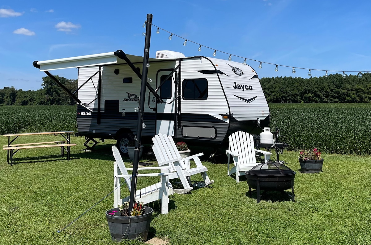 Nuestro RV está en una comunidad agradable en la bahía de Rehoboth y 15 minutos a la playa/a los enchufes y a muchas más atracciones. La casa de baño está a 100 pies de la casa rodante, duchas muy limpias y de alta presión con agua caliente sin fin. Casa rodante muy limpia y cómoda. Lote con vista al agua.