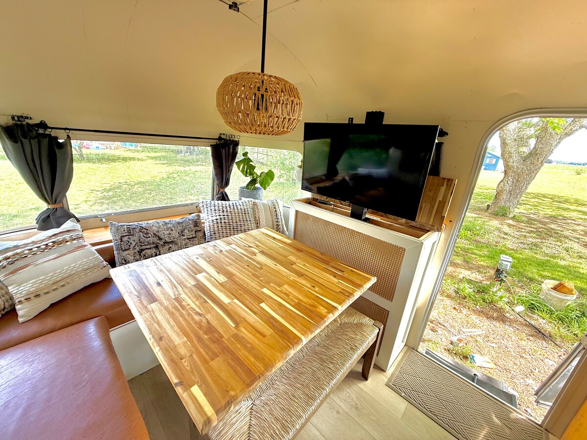 Escapada vintage a Airstream cerca de DE Turf y la playa Alójate en nuestro Airstream vintage totalmente restaurado, perfectamente ubicado en Magnolia, a solo 7 minutos de DE Turf, a 30 minutos de las hermosas playas de Delaware y a poca distancia a pie del restaurante local. Este refugio único tiene vistas a una granja tranquila y cuenta con una acogedora zona de estar al aire libre, una fogata y una parrilla Blackstone para cocinar al aire libre. En el interior, el Airstream combina el encanto vintage con comodidades modernas, que ofrece una estadía cómoda y elegante.