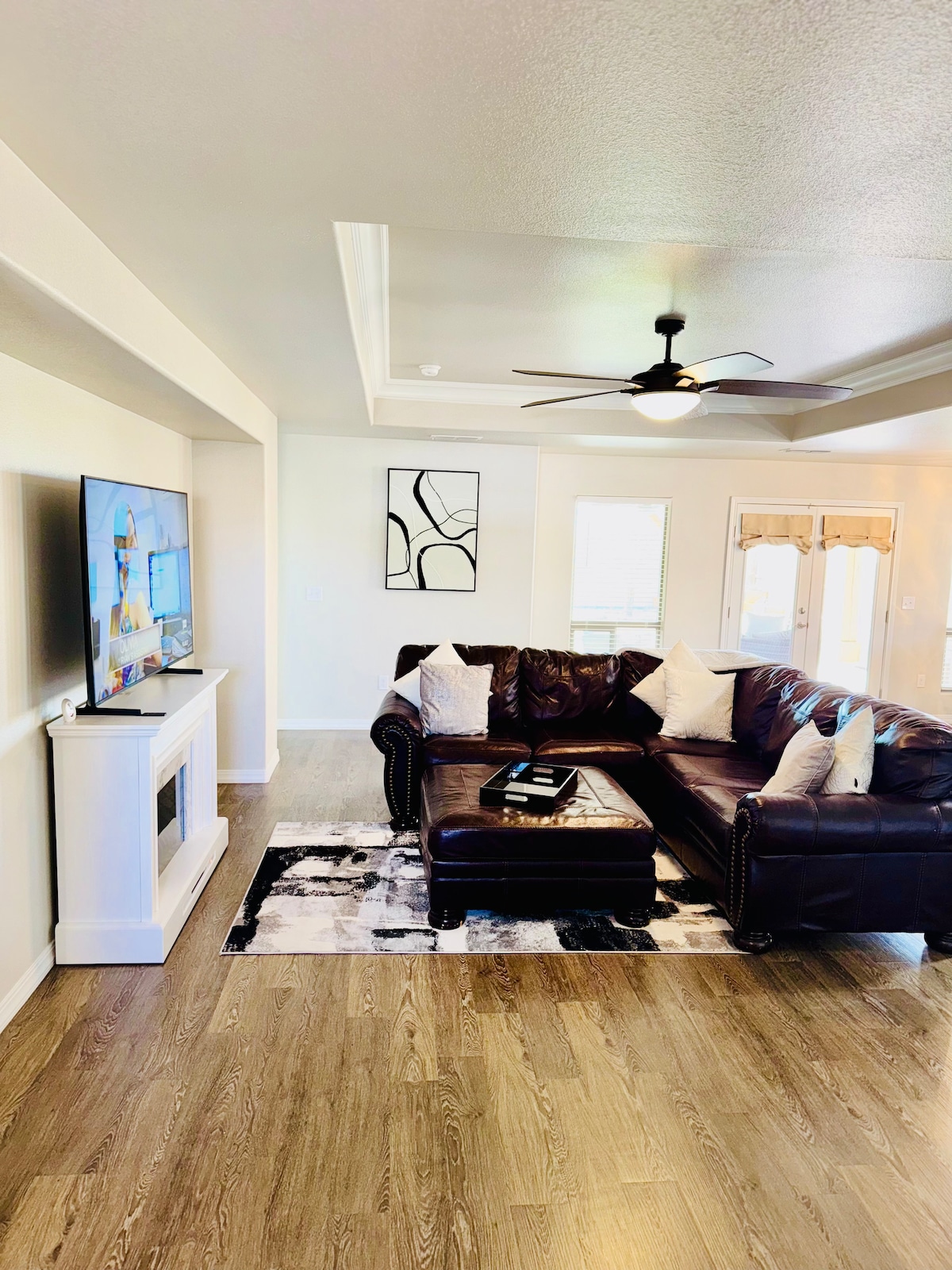Nuestra Sweet Escape está diseñada con mucho espacio y acceso completo a nuestra casa completamente nueva y amueblada, que incluye cómodas habitaciones para dormir (cama tamaño king en el dormitorio principal con TV), una amplia sala de estar y una cocina totalmente equipada con un amplio comedor. También cuenta con lavadora, secadora y detergente, así como aparcamiento en la entrada y en el garaje (para coches más pequeños). Se proporciona TV inteligente con SlingTV y wifi. Ubicado cerca de restaurantes y tiendas. (Este espacio admite mascotas, solo para un máximo de 2 perros).