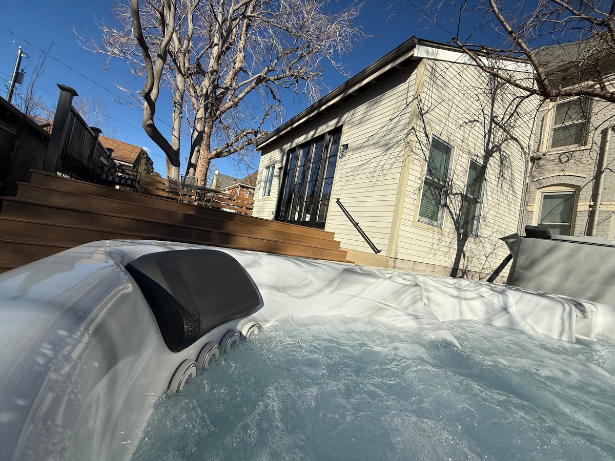 ¡Precioso patio trasero con jacuzzi! A poca distancia a pie de comida y bebida, cerca del Pabellón Levitt (¡música en vivo gratis!) y la Universidad de Denver. Apartamento tipo estudio privado en el sótano. Cocina completa, baño, lavandería. Cama tamaño king con un enorme sofá. Disfruta del sol de Colorado y del hermoso patio trasero (se puede fumar afuera). El propietario vive en el nivel principal con sus 2 cachorros amistosos. Bañera de hidromasaje compartida con los residentes de arriba + hasta 2 huéspedes en la unidad por encima del garaje. La disponibilidad de la fogata depende del clima.