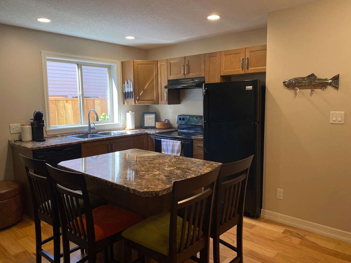 Este es un espacio tranquilo para llamar tuyo mientras te hospedas en Harbour City. Estamos a 5 minutos de la terminal de ferris de Departure Bay, a una manzana del Hospital Nanaimo y a poca distancia en coche del centro de la ciudad. La suite fue diseñada para crear un entorno tranquilo, luminoso y abierto donde puedas disfrutar de nuestro patio trasero y del estanque koi mientras estás separado para tu propia privacidad. Ofrecemos aparcamiento in situ, wifi, cable y un pequeño paquete de café/té y aperitivos para disfrutar durante tu estancia.