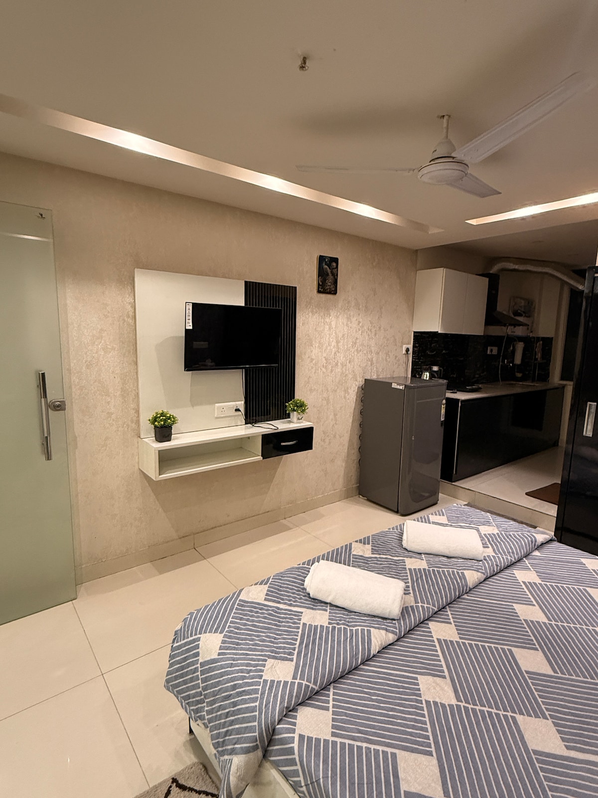 Sukoon Forever: conoce la paz Moderno 1BHK en Maya Garden Magnesia, Zirakpur 📍 Ubicación privilegiada Maya Garden Magnesia, este sereno 1BHK ofrece fácil acceso a Chandigarh. - A 20 minutos de Chandigarh, a 15 minutos del aeropuerto. Un espacio totalmente amueblado diseñado para ti ✔ Dormitorio: cama doble, sábanas suaves, armario Sala ✔ de estar: TV inteligente, asientos acogedores, escritorio de trabajo ✔ Cocina pequeña: microondas, inducción, hervidor eléctrico, elementos básicos. Wifi ✔ gratis, aire acondicionado y llegada autónoma Comunidad ✔ segura y cerrada con seguridad 24/7