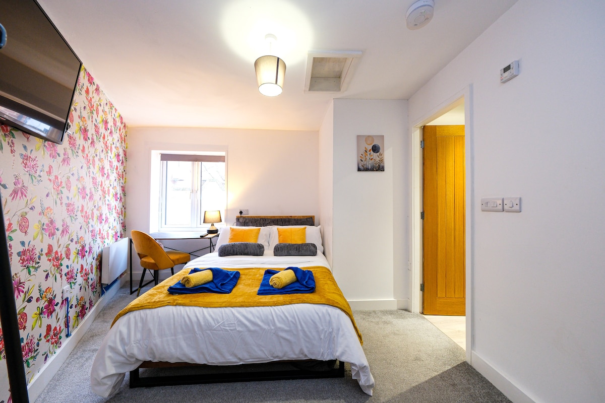 Relájate en nuestro acogedor estudio nuevo en el corazón de Derby, ¡tranquilo, cómodo y con estacionamiento privado gratuito! Encontrarás todo lo que necesitas: una cómoda cama con ropa de cama de calidad hotelera, té, café, refrigerios cuando llegues y una cocina lista para cualquier comida. Nuestros extras atentos (como artículos de tocador gratuitos) lo hacen perfecto para estadías cortas o largas: es realmente tu hogar lejos de casa. Creemos que tenemos todo lo que necesitas, pero si necesitas algo, solo avísanos. ¡Siempre estaremos encantados de ayudarte!