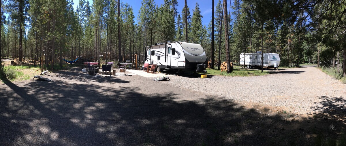 Conexión completa de autocaravanas para tu propia autocaravana, en el centro de Oregón, en una propiedad recreativa. Agua, alcantarillado, electricidad disponible en una almohadilla de grava en un entorno natural tranquilo. Perfecto para las opciones recreativas del centro de Oregón. Perfecto para opciones de estadía prolongada. Mt Bacholor, Sunriver, Deschutes River. Quédate y juega/trabaja. Las fogatas de propano son imprescindibles. Las prohibiciones de incendios en madera están en vigor en verano.