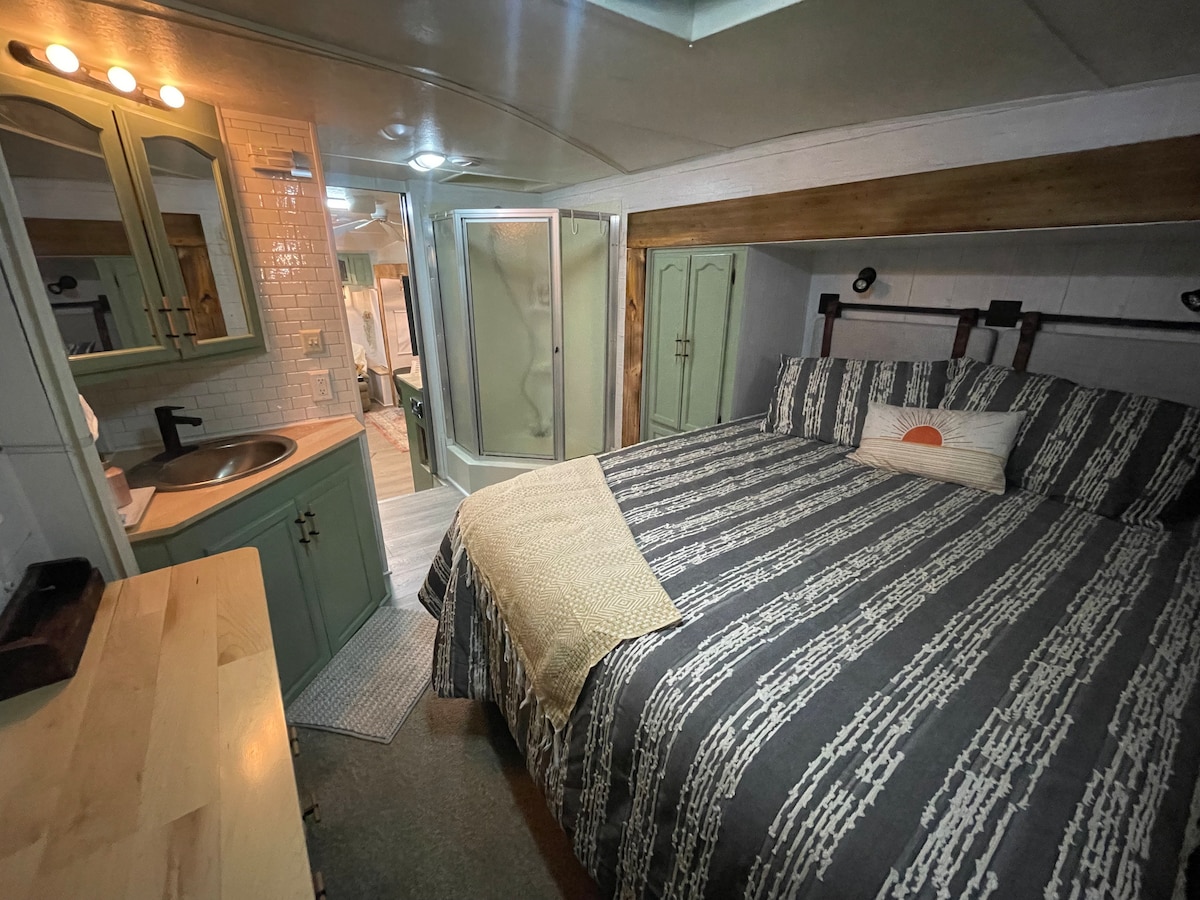 Cálida y acogedora caravana situada en el corazón de Oregón Central. Nuestra luminosa y hogareña autocaravana se encuentra a pocos minutos de las tiendas de Old Mill, Hayden Homes Amphitheater, el río Deschutes y un montón de rutas de senderismo. Capacidad para 5 personas con un sofá que se convierte en una cama doble, un dormitorio privado con una cama tamaño queen y un colchón inflable opcional, wifi, 2 televisores con Netflix, reproductor de DVD, ventilador de techo, cocina completa, aire acondicionado/calefacción (¡funciona bien en invierno!), cafetera, ducha, barbacoa al aire libre y mucho más.
