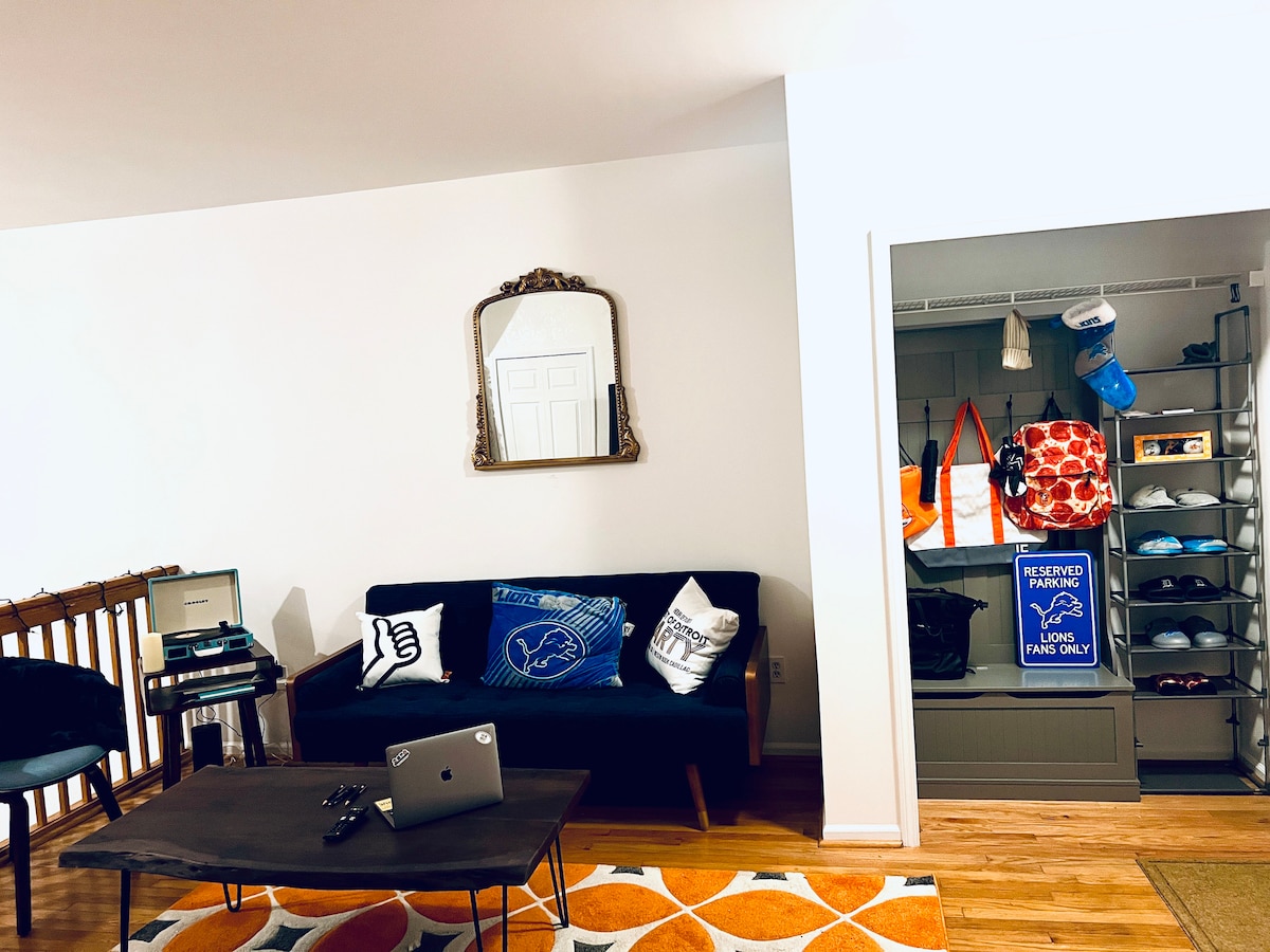 ¡El principal retiro ejecutivo de Detroit con un divertido tema de pizza cerca de LCA! Cuenta con un escritorio de oficina, configuración ergonómica, impresora, 2 camas queen, sofá plegable, chimenea eléctrica, pantuflas con temática de Detroit, cocina equipada, estación de café, Sra. Pac-Man y Galaga arcade. Entrada privada, garaje privado adjunto, dormitorio a nivel del suelo con medio baño, a pocos pasos de LCA, Fox Theatre, Ford Field, Comerica Park, Q Line cerca. Suelos de madera, alfombra nueva, electrodomésticos de acero inoxidable, lavadora/secadora, entrada con teclado. ¡Reserva ahora!