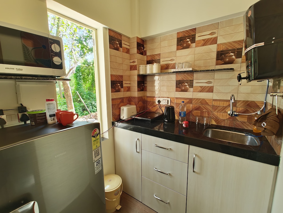 ¡Adéntrate en otro mundo! Chalet Vérité es una casa de campo privada en Rendezvous, a solo 20 minutos de Dharamshala. Es un perfecto equilibrio entre vistas abiertas y comodidad acogedora. Las ventanas de dos pisos enmarcan una impresionante cordillera. El dormitorio del entresuelo tiene vistas a una gran sala de estar. ¡Prepara tu oficina en casa, acurrúcate en el lindo asiento de la ventana o únete a nosotros en el comedor para tomar té y charlar! Tenemos 4 habitaciones más disponibles en Rendezvous. ¡Cuéntanos lo que necesites!