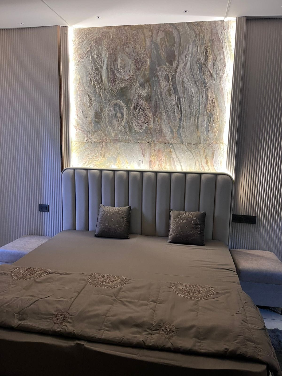 El primer apartamento de 2 Bhk que cumple con todos los requisitos ✨ - 2 dormitorios ( dormitorio principal, segundo dormitorio). - Dos camas tamaño king. - Una amplia sala de estar con una cómoda disposición de asientos. - 2 baños ( 1 en cada uno de los dormitorios). - Cocina pequeña (con todos los utensilios básicos de cocina disponibles y servicios abastecidos, es el lugar perfecto para preparar tus comidas favoritas) - Una zona de balcón compartido que conecta con el apartamento, que puede ser el espacio perfecto para tus paseos nocturnos. ¡Reserva ahora!