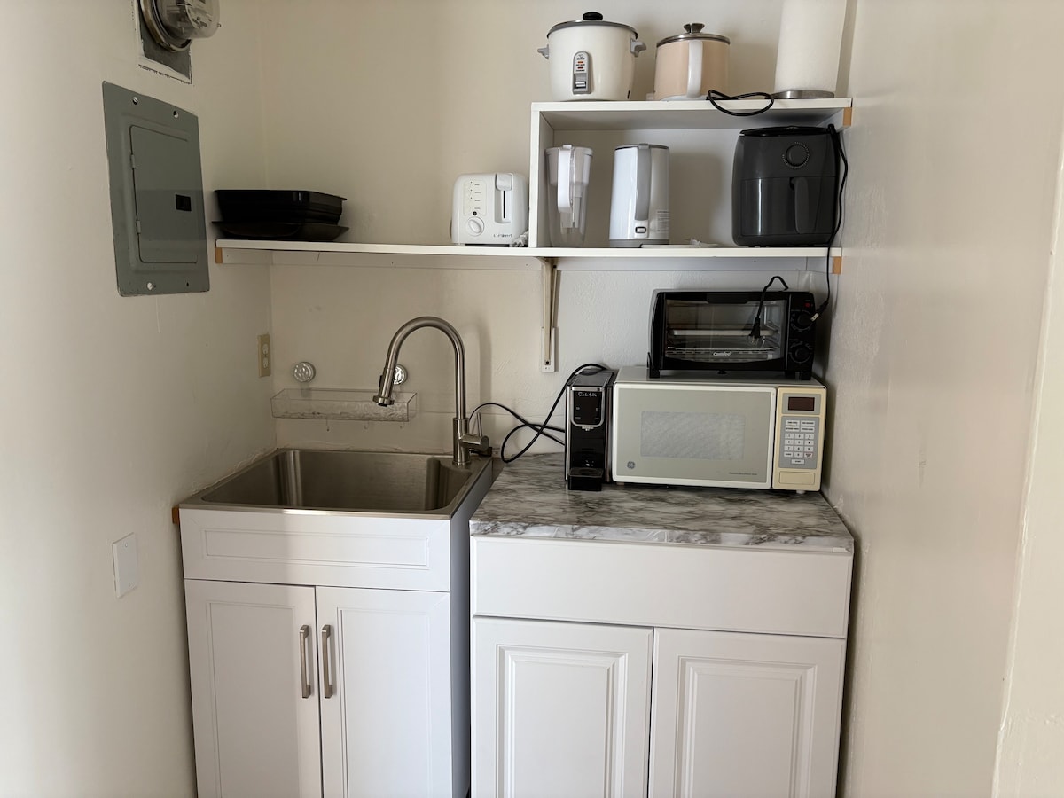 Bienvenido a tu elegante y cómodo apartamento estudio ubicado en South El Monte. Este acogedor espacio ofrece una vida minimalista con un toque de comodidad, perfecto para aquellos que buscan un estilo de vida sin complicaciones. Características principales: Cocina pequeña: totalmente equipada con varios electrodomésticos y algunos ingredientes para comidas sencillas. Zona de dormitorio: privada y acogedora, con una cama tamaño queen y mesitas de noche para tu comodidad. Baño: espacioso y tranquilo, repleto de artículos de aseo y un espejo LED ideal para selfies.