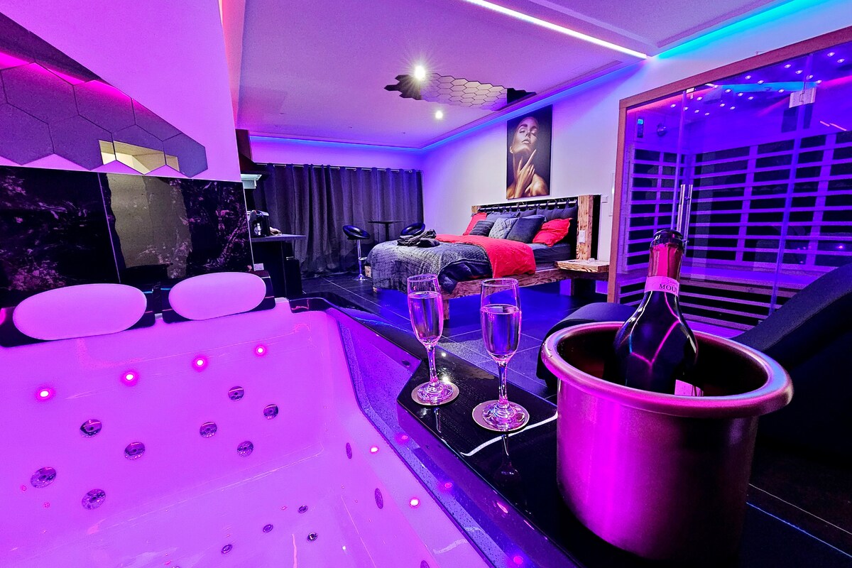 Ven y reúnete con tu pareja para una escapada de una noche o un fin de semana romántico. Nuestra suite spa ofrece toda la comodidad y el equipo que necesitas para un momento de relajación. En el programa: gran bañera de hidromasaje de vidrio de 2 plazas, sauna de infrarrojos, ducha grande, cama tamaño king de 2 m x 2 m, 2 pantallas de cine, sofá Tantra, cocina totalmente equipada con nevera y máquina de hielo. Llegada discreta e independiente. Aparcamiento gratuito en la calle y servicios cercanos. Solo para 2 adultos. Reserva el spa de la suite, ¡TE ENCANTARÁ!