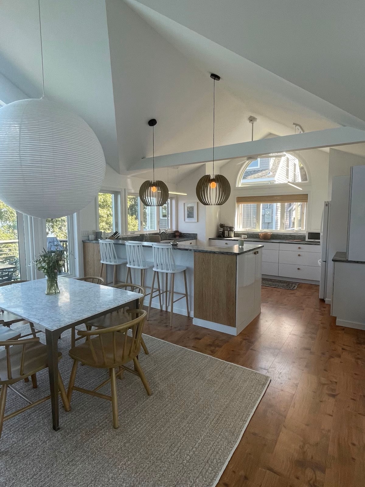 Destacada en VOGUE y Maine Home + Design, esta moderna cabaña artesanal ofrece vistas tranquilas al Atlántico, 150 pies de costa y un muelle privado, perfecto para tomar el café de la mañana, lanzar un kayak o ver focas, aves marinas y barcos que pasan. Ubicado entre pinos altos, combina influencias nórdicas y japonesas en un espacio tranquilo y compuesto. Los interiores de madera, piedra, yeso de cal y hormigón forman un refugio conectado a tierra, expresivo y sostenible. A 1 hora de Portland, pero con un mundo aparte.