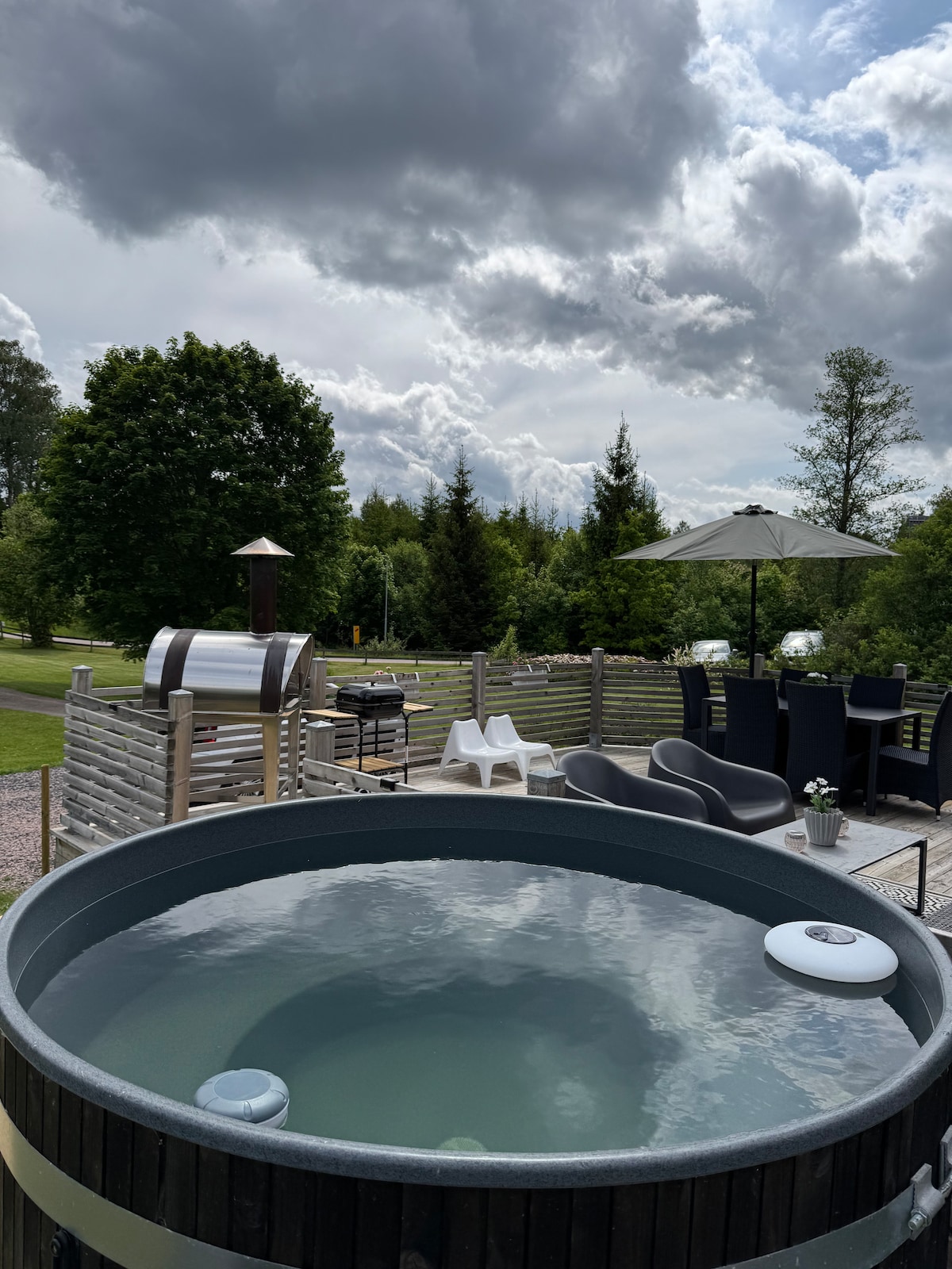 Casa de campo sueca Bañera de hidromasaje, horno para pizza y jardín