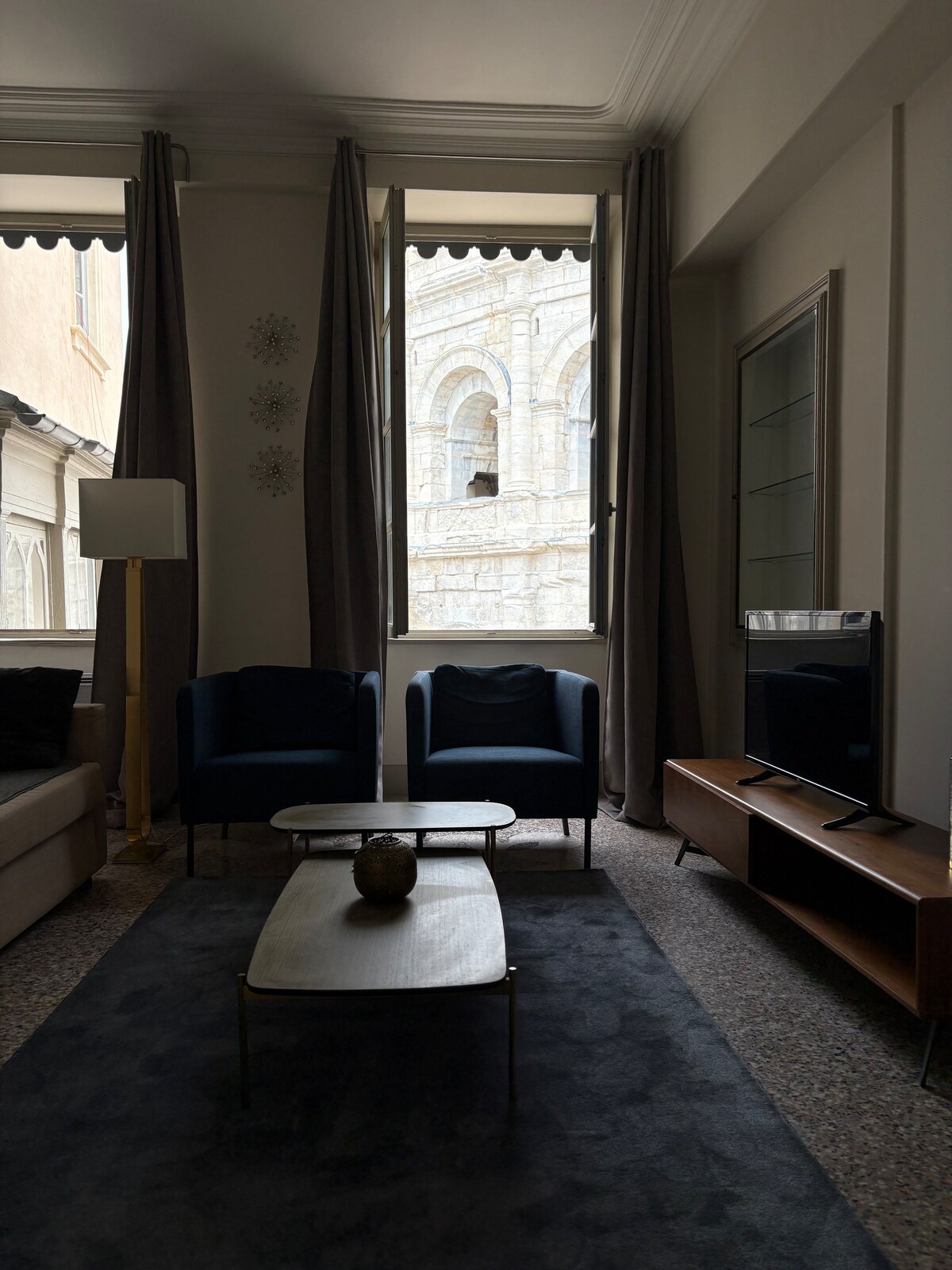 Alójese con las ventanas frente a las Arenas de Nimes en un apartamento burgués de 57 m², en el corazón de una antigua mansión en el centro histórico. Encanto de lo antiguo, habitación con cama doble, impresionantes vistas a las arenas de Nimes, comodidad y refinamiento para una escapada inolvidable.