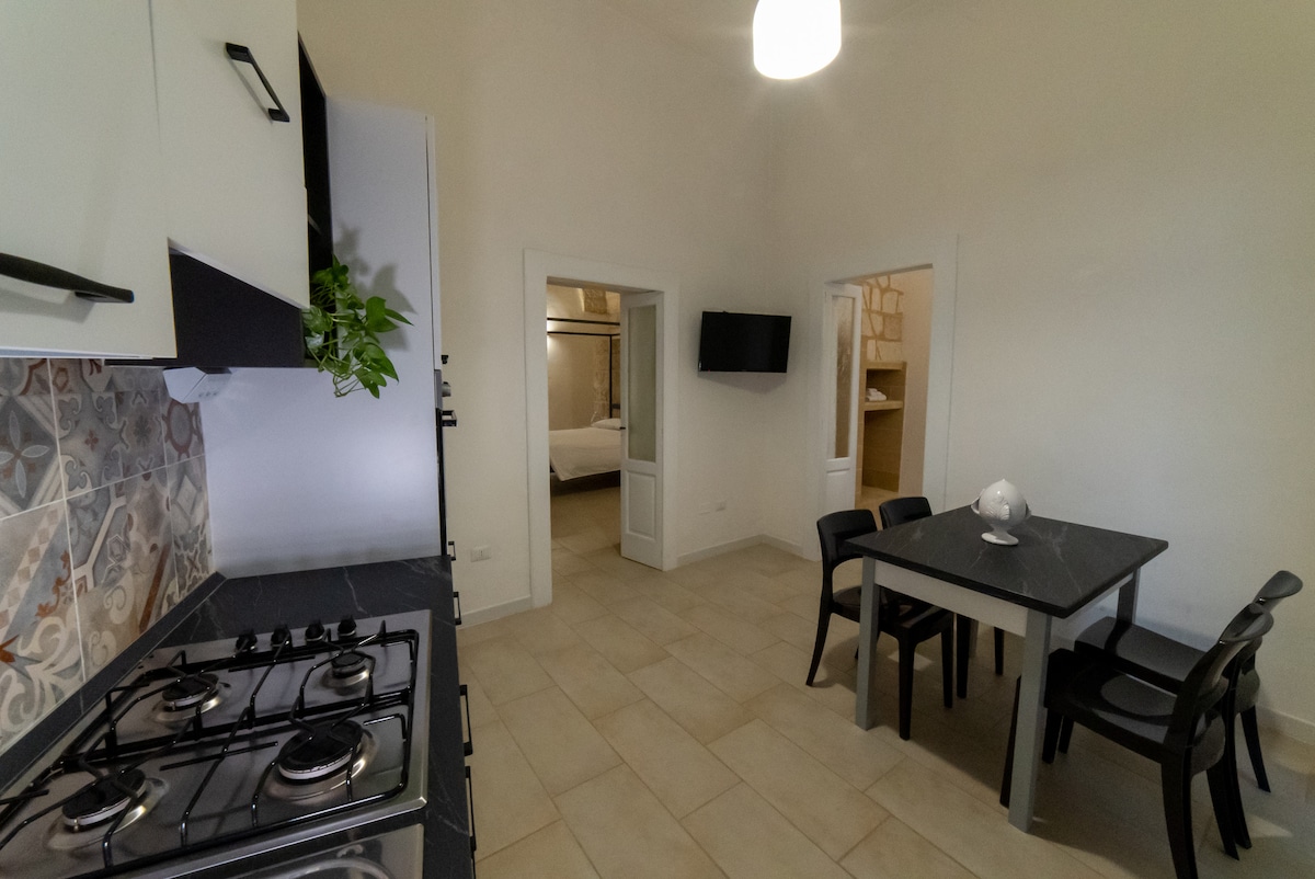 Apartamentos completamente renovados y equipados con todas las comodidades necesarias para pasar unas vacaciones con total tranquilidad y relajación. Incluyen una plaza de aparcamiento y espacios exteriores. Los apartamentos están situados dentro del Parque Natural Regional, lejos de la carretera principal, son el lugar ideal para aquellos que quieran pasar sus vacaciones con serenidad y sin estrés, con solo los sonidos típicos del salento del canto de las cigarras y de las olas que rompen en la costa cercana.