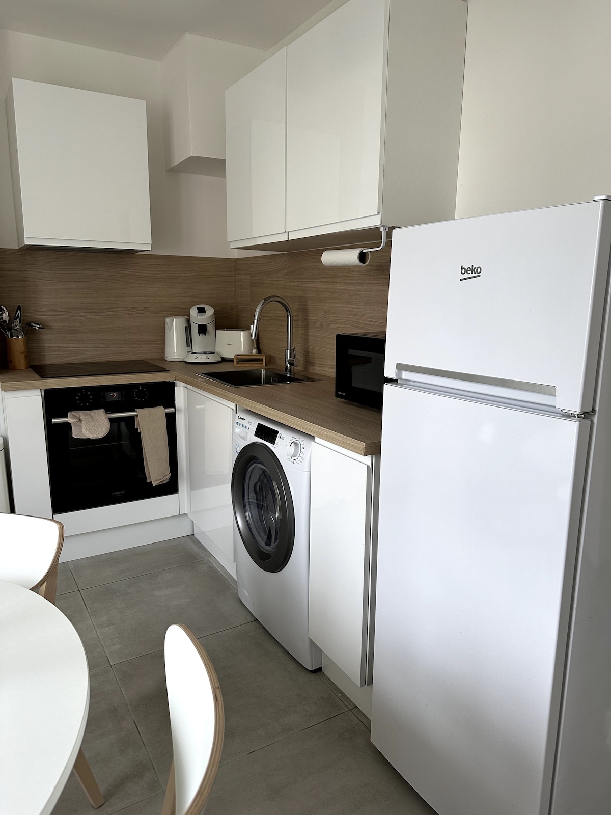 Alojamiento moderno situado en la planta baja de un edificio privado. Ideal para parejas o para teletrabajo (escritorio específico + fibra). ✅ Ubicación: Calle muy comercial, a 20 minutos a pie del pleno centro (4 minutos en auto). ✅ Llegada autónoma a través de la caja de llaves ✅ Capacidad: 4 personas. Cama doble (160 × 200) + sofá cama de apertura rápida (160 × 200). ✅ Ventajas: Reformado, fácil acceso, tranquilo. ✅ Estacionamiento: Plazas gratuitas al lado del edificio. ¡Un entorno seguro y práctico para sus estadías profesionales o de ocio!