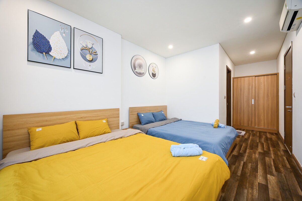 El departamento se ubica en el edificio de departamentos Ha Do Centrosa, en la calle 200 Ba Month of February, distrito 10, HCM. El interior está totalmente equipado con comodidades como parques, áreas de juegos infantiles, supermercados, cafés, restaurantes, farmacias, lavandería... El departamento está recién diseñado, es moderno, de clase alta, es conveniente para mover los distritos centrales. El departamento tiene una superficie de 86 m2 que incluye 2 dormitorios, 3 camas y 2 tolets totalmente amueblados para 6 personas. ¡Es un placer hospedarte!