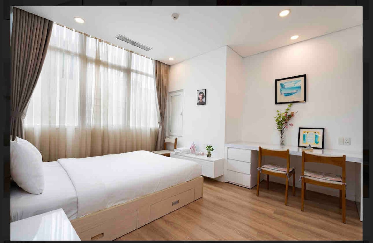 Situado en el distrito 3, la ciudad de Ho Chi Minh es una opción popular para los viajeros. - A 10 minutos del mercado de Ben Thanh, la calle peatonal de Bui Vien y los distritos 1 y 4. - Tienda de comestibles, zona de restaurantes y cafetería debajo del edificio. - Bonito gimnasio, piscina, zona de barbacoa y parque infantil. - Ofrecemos servicio completo para tu viaje: recogida en el aeropuerto, tarjeta SIM de internet y motocicleta de alquiler. Queremos que recibas un lugar para vivir y una gran cantidad de experiencias maravillosas.